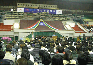 2002학년도 입학식이 지난 달 28일 서울캠퍼스 올림픽체육관과 안산캠퍼스 대운동장에서 열렸다. 오전과 오후로 나뉘어 열린 이번 2002학년도 입학식에서 서울캠퍼스 3천3백76명, 안산캠퍼스 2천2백25명 등 모두 5천6백1명이 새로운 한양가족이 되었다.