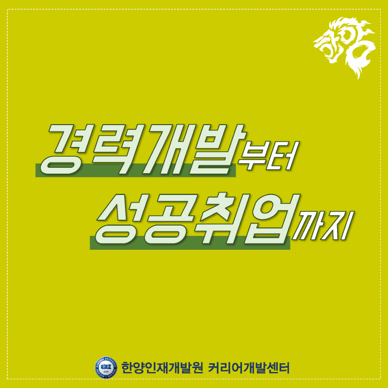 한양인재개발원 커리어개발센터는 경력개발부터 성공취업까지 전 과정을 지원하고 있습니다.