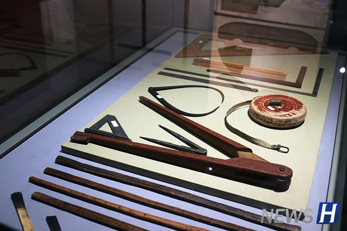 한양대 박물관은 주변에서 흔히 볼 수 있는 현대식 자부터 이성산성에서 출토된 당척(唐尺, 당나라에서 쓰이던 자)과 안성 청룡사에서 발견된 조선 시대의 곡척까지 동서고금을 넘나드는 자를 소개한다. 한 교수는 “전시하는 다양한 자들을 통해 자에 담긴 장인의 삶과 지혜를 엿볼 수 있다”고 밝혔다. 중요무형문화재 제 74호인 신응수 대목장(건축물 짓는 대목 일에 능한 장인)은 광화문 건축 현장에서 사용한 5m 장척 자를 기증해 이번 전시를 더욱 빛냈다.