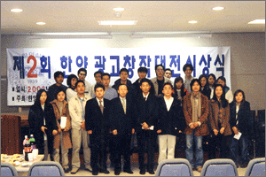 수많은 광고인을 배출하고 있는 본교에서 이러한 시대의 흐름에 발맞춰 실시한 '2001 한양 광고 창작대전 시상식'이 지난 4일 안산캠퍼스 언론정보대학에서 열렸다. 대학생들의 광고에 대한 관심과 창조성 및 아이디어 개발능력을 증진시키기 위해 실시된 2001 한양 광고 창작대전은 본교 재학생들만을 대상으로 했던 1999년 1회 때와는 달리 광고에 관심이 있는 전국의 모든 대학 및 대학원 재학생으로 참가자격을 확대해 실시됐다. 그 결과 전국 9개 대학에서 총 84편의 작품이 출품돼 이중 대상 1편, 최우수상 3편, 우수상 3편, 장려상3편, 가작 4편 등 총 14편에 대한 시상이 이뤄졌다.