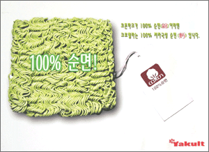 '순면 크로렐라'라는 제품이 순면(순한 면)이라는 걸 강조해서 순면이라는 이미지를 섬유 순면의 이미지와 연관시켜 봤다. 면발 순면과 섬유 순면 모두 건강에 좋다는 이미지를 가지고 있다는 것에 주목 두 이미지의 상관성을 찾기 위해 노력했다. 순면하면 쉽게 생각할 수 있는 코튼 100%라는 아이디어를 가지고 스토리를 만드는 과정에서 여러 가지 생각과 시도를 하며 고민하던 중 마감 이틀전 옷장에 있는 옷을 정리하다 우연히 옷에 부착된 꼬리표를 보고 아이디어를 얻었다.