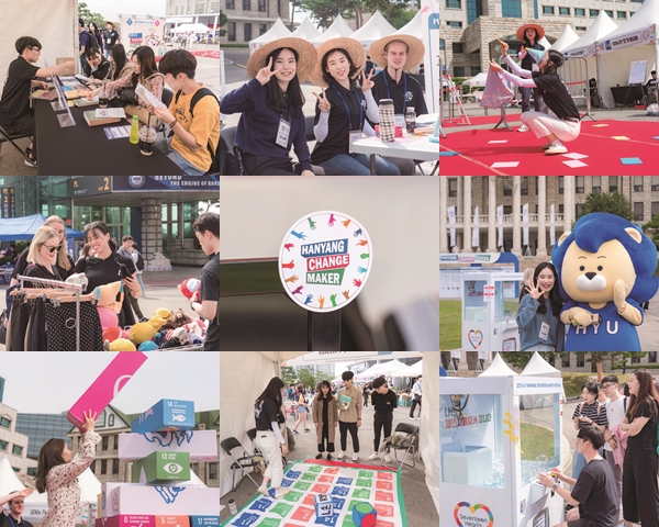 키워드는 ‘확산’이다. 2018년 4월, 아쇼카U 체인지메이커캠퍼스 가입이 확정되며 한양대는 명실상부 국내 최고의 사회혁신 선도대학으로 자리매김한 바 있다. 체인지메이커십의 개념 확산, 한양대의 모든 구성원이 곧 체인지메이커라는 인식 개선을 위해 이번 페스티벌은 지난 행사와는 큰 차별점을 뒀다. 더 많은 사람이 체인지메이커십에 쉽게 접근하도록 행사 개최 전 열흘가량 애지문 앞과 행원파크 분수광장에서 사전 캠페인을 펼쳤다. 재학생들이 한양체인지메이커 캠페인에 참여하게 독려하고, 참여한 이들에게는 텀블러를 증정했다. 텀블러에는 SDGs(지속가능개발목표) 달성을 위해 개개인부터 노력하자는 메시지를 부착했다. 참가자들은 본인의 텀블러 사진을 개인 SNS에 올려 캠페인을 또 한 번 ‘확산’하며 더 많은 참여를 유도했다. 이렇게 ‘확산’된 캠페인을 통해 재학생들은 체인지메이커십의 개념을 쉽게 흡수하고, 누구나 작은 노력을 기울인다