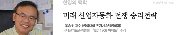 바야흐로 국제 산업계는 표준화 전쟁 중이다. 몇 년 전 한국의 DMB, 와이브로 기술이 국제표준으로 채택되었을 때 떠들썩했던 뉴스를 기억하는가. 특히 통신기술의 국제표준채택은 수천억 원의 경제효과를 유발하는 중요한 사안이다. 국제전기표준위원회(IEC)는 국제표준화 활동에 기여도가 큰 국제표준 전문가에게 'IEC 1906 어워드‘를 수여한다. 우리대학의 홍승호 교수(공학대학∙전자시스템공학과)는 지난 7월19일 이 상을 수상했다.