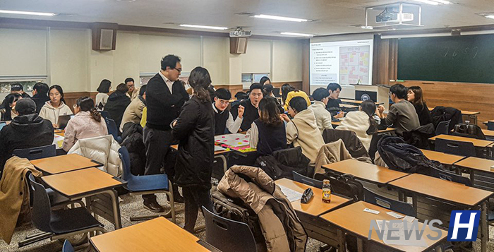 신 씨는 “수강 전에는 ‘사랑의 실천’을 이행한다는 게 막연했다"며 "이번 수업을 통해 사랑의 실천이 공감에서 시작된다는 걸 깨달았다”고 전했다. 앱 제작을 담당하고 있는 이 씨는 “혁신은 기존에서 벗어난 방식이기 때문에 고통을 수반한다고 생각한다”고 말했다.
