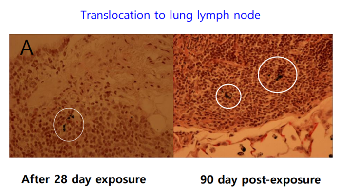 폐는 배출 기능이 부족해서 폐에 침투한 미세먼지가 배출되기에는 오랜 시간이 걸린다. 실제로 안 교수는 쥐를 28일 동안 미세먼지에 노출한 뒤 90일 동안 깨끗한 공기를 마시게 하는 실험을 진행했다. 그 결과 90일이 지났음에도 불구하고 림프 안에서 미세먼지를 확인할 수 있었다.