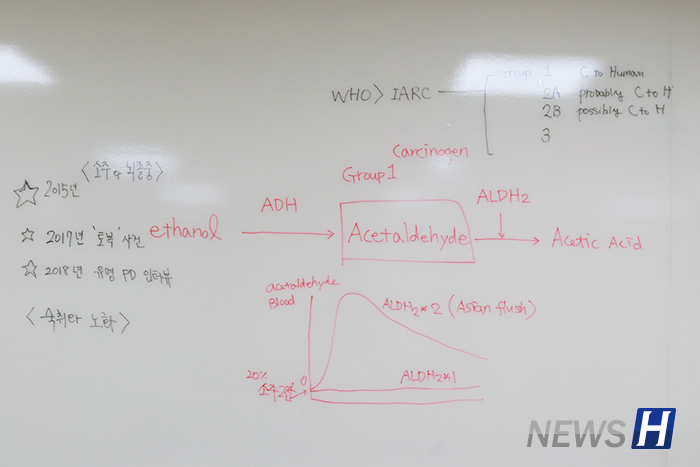"20 years have passed since the 21st century. I wish this becomes an opportunity for all of society to wake up," said Kang. "Schools, the health ministry, clinics or hospitals don't emphasize the importance of these findings, so I believe that these organizations should put in more effort to stress the issue. In addition, when we come across a red light, we stop, and in the same manner, when we see a person whose face is all red during drinking sessions, we should be aware that they are being attacked by carcinogens within their bodies."
