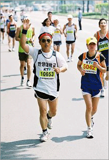 이에 본교에서도 지난해 9월부터 교직원을 중심으로 건강한 심신을 다지기 위한 마라톤 동호회 '달리는 한양'이 결성되었다. 지난 12일 회원들을 이끌고 경향마라톤대회에 참가한 동호회 회장 법대 이희관 교학계장을 통해 마라톤 애찬론을 들어보았다.