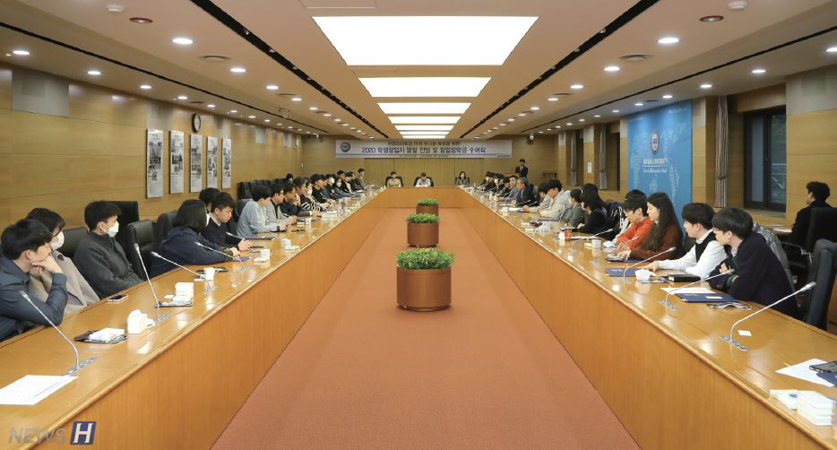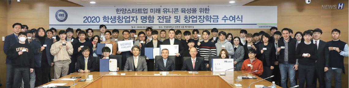 한양대학교에서 미래 유니콘 기업 육성을 위한 ‘2020 학생 창업자 명함 전달 및 창업장학금 수여식’이 진행됐다. 2019년에 창업한 학생창업자를 격려하는 한편, 미래 유니콘 기업으로 성장할 수 있는 기반 조성을 위해 마련한 행사다. 올해를 시작으로 매년 개최할 예정이다.