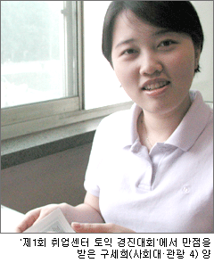 한편 서울캠퍼스 취업지원팀에서는 방학중에 취업 시에 꼭 필요한 이력서, 자기소개서 작성 경진대회도 개최할 예정이다. 취업지원팀 사재욱 씨는 "요즘 기업에서 토익 성적을 많이 요구하고 있어 학생들에게 미리 준비할 수 있는 환경을 만들어주기 위해 이번 대회를 개최했다"며 "방학 기간에는 졸업 예정자를 대상으로 학과별 간담회를 여는 등 학생들의 취업준비를 위해 더욱 박차를 가할 예정"이라며 학생들의 많은 참여를 당부했다.