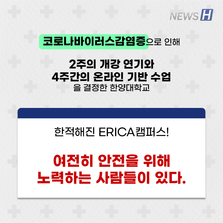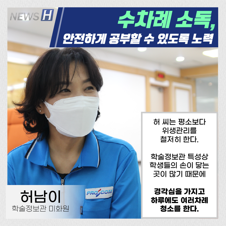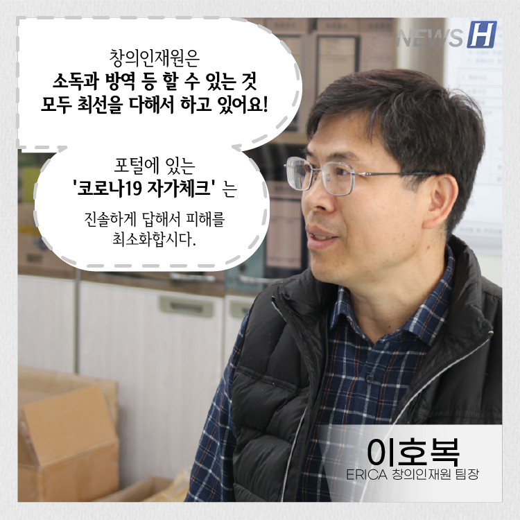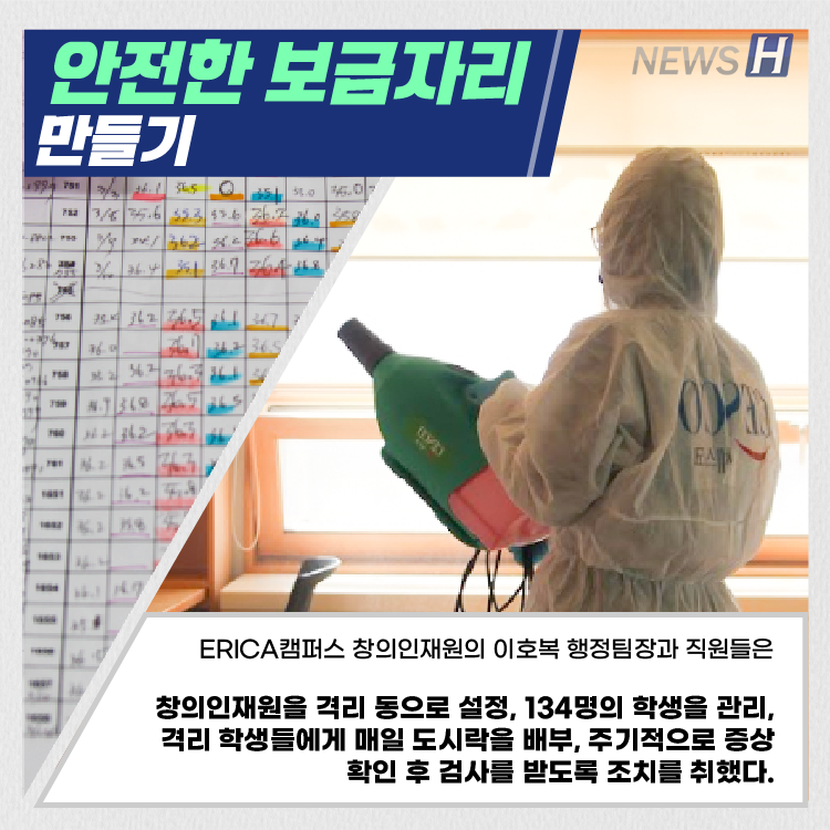 코로나19 확산을 막기 위한 ERICA캠퍼스 직원들의 노력 ▲ 카드뉴스의 원본 기사는 아래에서 읽을 수 있습니다 [코로나19] 학교 곳곳에서 노력 중인 '한양 어벤져스' 키워드 '한양위키' 키워드 보기 #창의인재원 #학술정보관 #코로나19/ERICA 장현지 hh4009@naver.com 다른기사 보기 저작권자 © 뉴스H 무단전재 및 재배포 금지 당신만 안 본 뉴스 [포토스토리] "AI 시대 해답은 브랜딩", 오세훈 서울시장의 경영학 특강 현장 Into the Creation 2025, 창작자들의 꿈에 날개를 이찬규 학생, 사이버·우주 융합연구로 2025 사이버안보논문공모전 대상 수상 한양대, '2026 QS 지속가능성 순위' 세계 161위, 국내 4위 기록 해커톤에서 인턴십까지, 현대차 사내 스타트업에 다녀오다 [창업지원단 인턴십 경험기] [포토스토리] 한양 속에 사회혁신을 품다, SSIR 먼슬리 콜로키움 현장 행복은 좋은 경험의 ‘빈도’에서, 서은국 교수와 함께한 한양인의 힐링콘서트 현장 [포토스토리] "AI 시대 해답은 브랜딩", 오세훈 서울시장의 경영학 특강 현장 댓글삭제 삭제한 댓글은 다시 복구할 수 없습니다. 그래도 삭제하시겠습니까? 비밀번호 닫기 기사 댓글 0 댓글 접기 로그인 후 이용 가능합니다. 댓글 내용입력 비회원 로그인 이름 비밀번호 댓글 내용입력 댓글쓰기 계정을 선택하시면 로그인·계정인증을 통해 댓글을 남기실 수 있습니다. 회원 로그인 비회원 글쓰기 이름 비밀번호 자동등록방지 로그인 옵션 창닫기 기획기사 [포토스토리] "AI 시대 해답은 브랜딩", 오세훈 서울시장의 경영학 특강 현장 Into the Creation 2025, 창작자들의 꿈에 날개를 해커톤에서 인턴십까지, 현대차 사내 스타트업에 다녀오다 [창업지원단 인턴십 경험기] [포토스토리] 한양 속에 사회혁신을 품다, SSIR 먼슬리 콜로키움 현장 행복은 좋은 경험의 ‘빈도’에서, 서은국 교수와 함께한 한양인의 힐링콘서트 현장 [카드뉴스] '한양대학교 SDGs? 알고 보니 내 일상 속에 있었다!' 1편