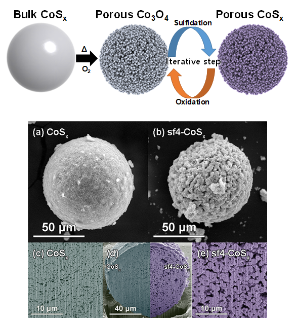 이번 연구는 과학기술정보통신부‧교육부‧한국연구재단 기초연구사업 (중견연구, 대학중점연구소) 지원으로 수행됐으며, 연구결과는(논문명: Iterative oxidation and sulfidation reactions: revival of bulk cobalt sulfide into an active electrocatalyst for the oxygen evolution reaction) 나노소재기술분야 국제 저명 학술지 「Journal of Materials Chemistry A」 에 출판됐다.