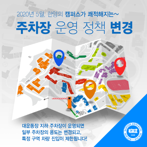 대운동장 지하주차장 운영과 함께 일부 주차장 운영 정책이 변경될 예정이라고 합니다. 보행자를 위한, 조금 더 안전하고 쾌적한 캠퍼스를 기대해봅니다!