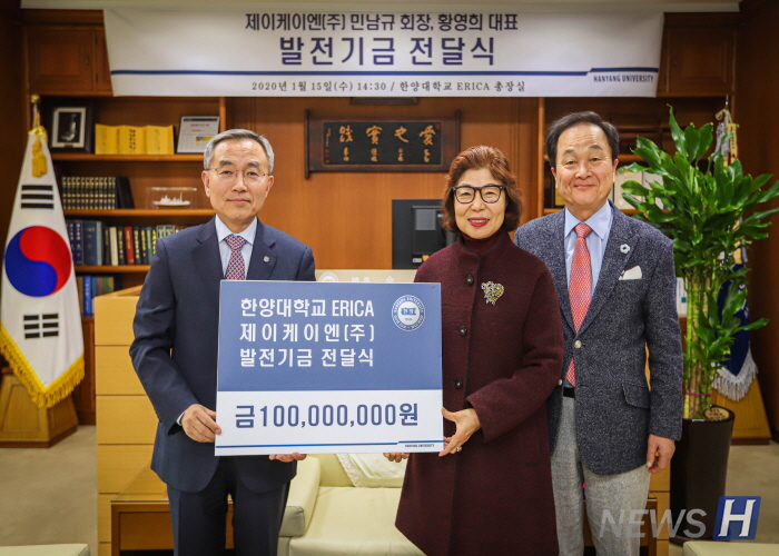 황영희 (화학공학 67) 제이케이엔 대표가 12월 11일 ERICA캠퍼스에 1억 원을 기부했다.