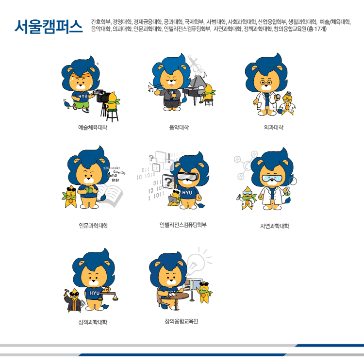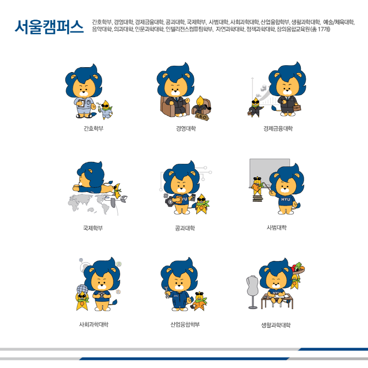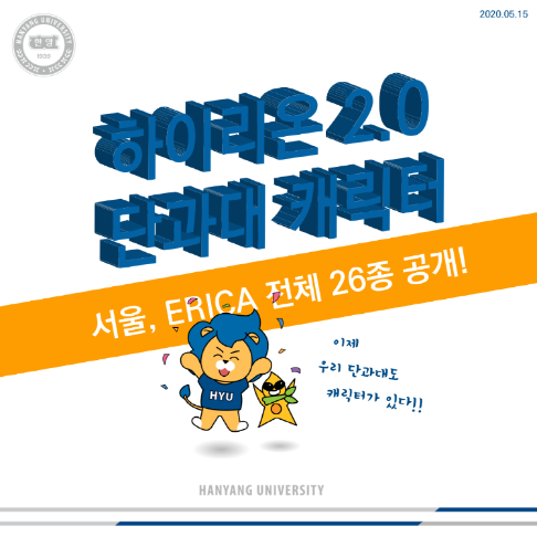 5월 15일 한양대의 생일! 바로 개교기념일 인데요. 마치 생일선물 처럼 하이리온 캐릭터가 발표되었습니다. 서울과 ERICA 양캠퍼스의 단과대학별 캐릭터를 지금 만나 보시죠!