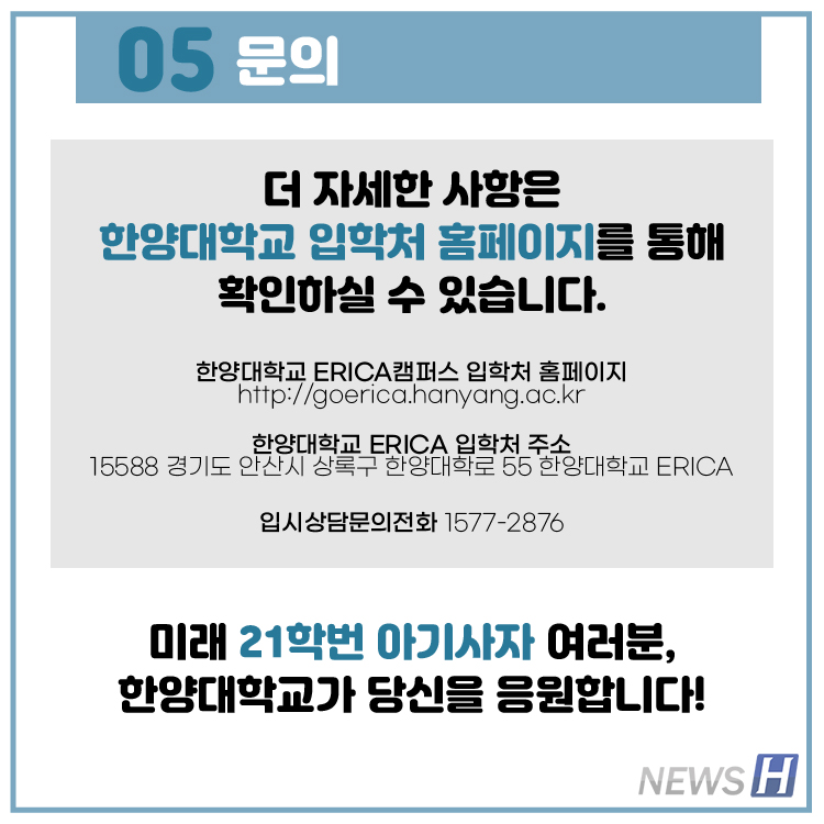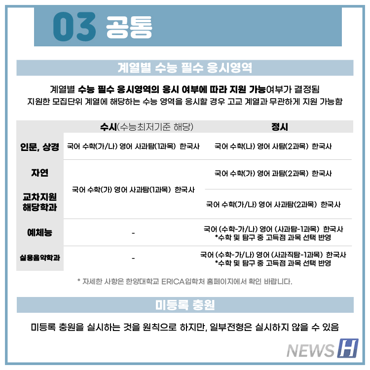 ▲ 한양대학교 ERICA캠퍼스 입학처 사이트에서 더 자세한 사항을 확인할 수 있습니다