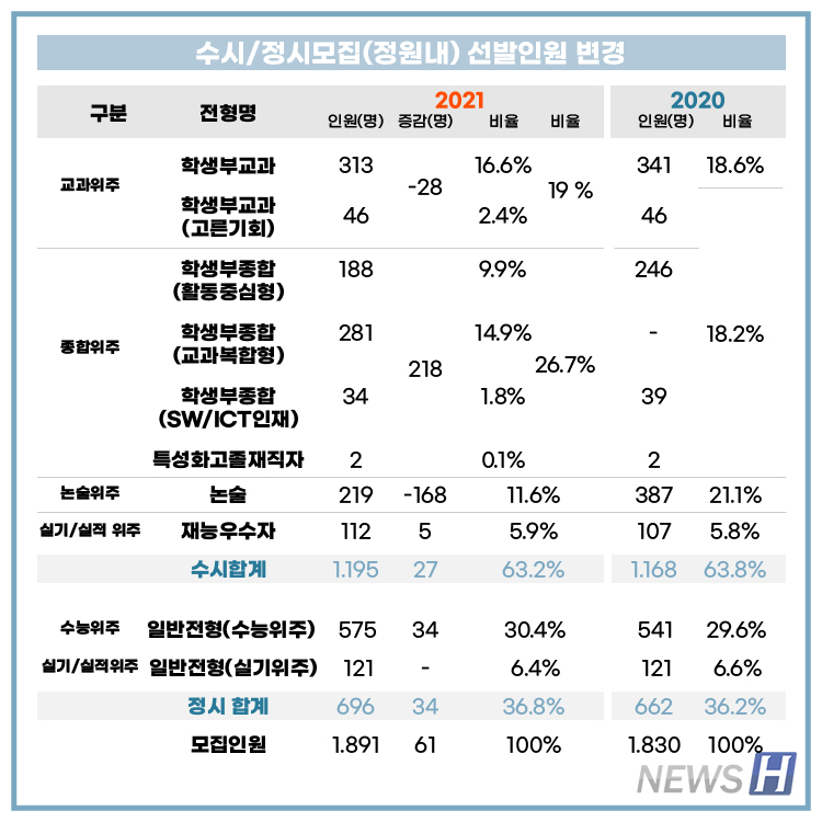 수시 수능 최저기준 변경, 정시 수능 반영비율 변경 등
