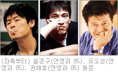 스크린과 브라운관을 분주히 오가며 최고의 주가를 올리고 있는 유오성, 설경구, 권해효 동문 3인방은 모두 연영과 85학번 동기다. 장선우 감독의 영화 〈꽃잎〉으로 스크린에 데뷔한 설경구 동문은 이후 〈러브스토리〉, 〈처녀들의 저녁식사〉, 〈유령〉 등에 단역으로 출연했지만 크게 주목받지 못했다. 1999년 박종원 감독의 〈송어〉를 거쳐, 이창동 감독의 〈박하사탕〉에서 주연을 맡으며 스타덤에 올랐다. 너무도 평범한 개성을 충무로에서 '독점'한 배우로 평가받는다. 권투선수 출신의 형사 역으로 열연한 〈공공의 적〉을 거쳐 이창동 감독과 다시 호흡을 맞춘 〈오아시스〉가 오는 15일 개봉 예정에 있다.