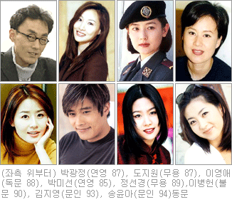 이외에 영화 〈인샬라〉, 〈JSA〉, 〈봄날은 간다〉를 거쳐 CF계의 신데렐라로 더 잘 알려진 이영애 동문(안산독문 88)을 비롯해서 박미선(서울연영 85), 정선경(서울무용 89), 이병헌(안산불문 90), 김지영(안산문인 93), 송윤아(안산문인 94) 동문 등이 스크린과 브라운관을 넘나들며 맹활약 중이다.