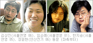 이러한 한양 열풍을 주도하고 있는 대표적인 감독들로 〈신라의 달밤〉의 김상진 동문(서울연영 86), 〈와이키키 브라더스〉의 임순례 동문(서울영문 81), 〈하루〉의 한지승 동문(서울연영 85) , 〈텔미썸딩〉의 장윤현 동문(안산전기 86) 등을 꼽는데 아무도 주저하지 않는다. 영화 〈돈을 갖고 튀어라〉를 시작으로 〈깡패수업〉, 〈주유소 습격사건〉 그리고 지난해 여름 개봉했던 〈신라의 달밤〉에 이르기까지 소위 '대박'을 터뜨렸던 김상진 동문은 스스로를 '쌈마이(3류)'라 평하는 타고난 흥행꾼이다. 죽고 싶을 만치 '웃기는 것'은 '철학'과도 통한다는 신념으로 60대쯤에는 코미디물로 깐느에 가고 싶다는 흥행의 보증수표다.