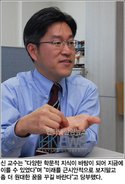 그 동안 다양한 분야의 공학에 관심을 가져온 신 교수는 우리대학에서 공업화학과로 학사, 석사 과정을 차례로 밟으며 생체재료에 대해 연구에 매진했다. 후엔 생명공학을 연구하여 박사학위를 취득했고, 포스트 닥터(Post-doc)로는 기계공학을 연구했다. 신 교수는 “다양한 분야에 학문적 배경을 두고 있어 이번 연구에 포괄적으로 접근할 수 있었다”고 말했다.
