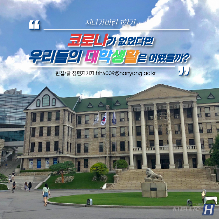 한양대학교는 2020년 1학기 종강과 함께 여름방학에 들어갔다. 2020학년도 1학기는 신종 코로나바이러스 감염증(코로나19) 사태로 수업 대부분이 비대면으로 진행됐으며 각종 학교 행사 역시 취소됐다. 코로나19의 장기화로 한양인들은 한양대학교에서만 누릴 수 있는 대학 생활을 즐기지 못했다. 지나가 버린 1학기, 코로나가 없었다면 한양인들의 대학 생활은 어땠을까?
