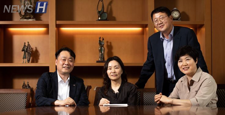 (왼쪽부터) 박한철(동기회장) / 성주은(사무총장)/ 김기연(부회장) /권병운(발전기금분과장)