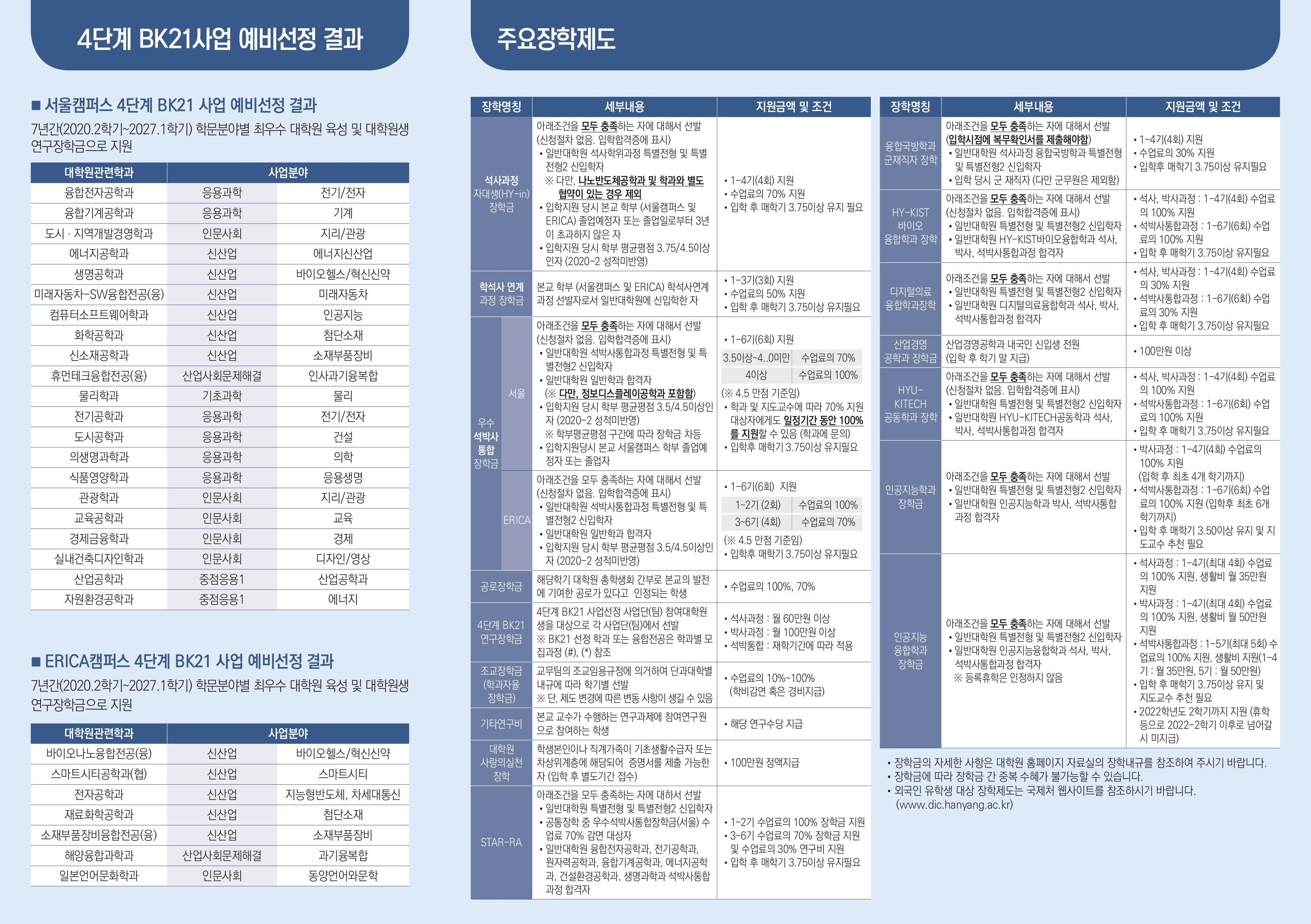 이번 대학원 페어에는 '학과별 1:1 입학상담' 과 '이공계 Lab Tour' 프로그램이 마련됐다. 또한, 상담자에 한해 원서접수시 전형료 50% 할인이 제공되는 혜택도 제공한다. 서울캠퍼스는 11개 단과대학, 44개 학과가 참여하며 ERICA캠퍼스는 9개 단과대학, 37개 학과가 참여한다.