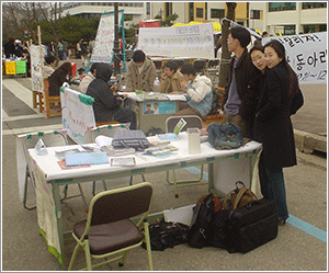 한편 동아리에 가입한 새내기들은 저마다의 설렘을 감추지 못했다. 전통 무예 택견 동아리인 ‘품’에 가입한 이철형(공과대·기계공학부1)군은 “운동을 하는 것을 무척 좋아하고 다양한 운동을 해봤다”고 언급하며 “전통 무술인 택견을 꼭 해보고 싶었다”고 가입 이유를 밝혔다. ‘일어서는 땅’에 가입한 신욱진(공과대·전전컴1)군은 “한마당에서 많은 동아리를 꼼꼼하게 살펴보고 ‘일어서는 땅’을 선택했다”면서 “선배들과 함께 땀을 흘리며 대학시절 좋은 추억을 만들고 싶다”고 말했다.