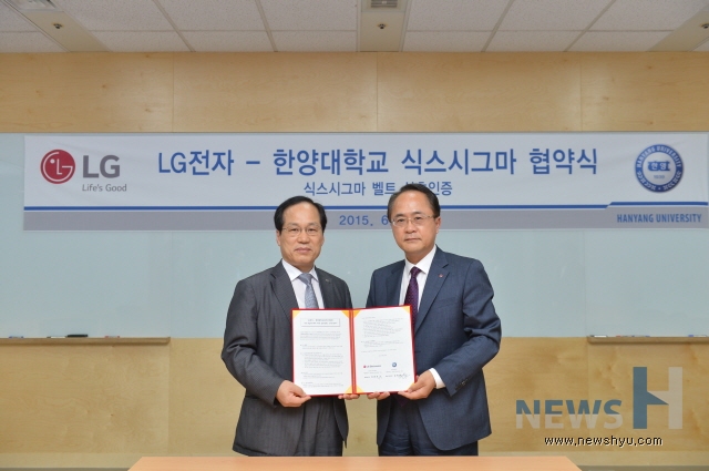 한양대와 LG전자(대표 구본준)는 30일 서울캠퍼스 HIT빌딩에서 ‘6시그마 벨트 상호인증’ 등을 포함한 전반적 운영에 관한 협약(MOU)식을 체결했다.