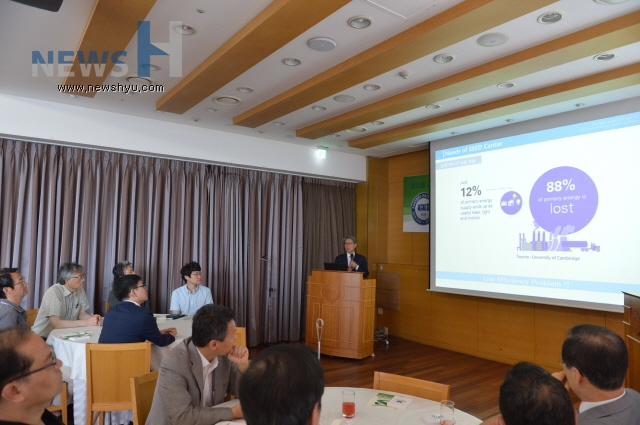 | ▲ 성태현 한양대 에너지 하베스팅 센터장이 에너지 하베스팅 센터에 대해 소개를 하고 있는 모습 | ||