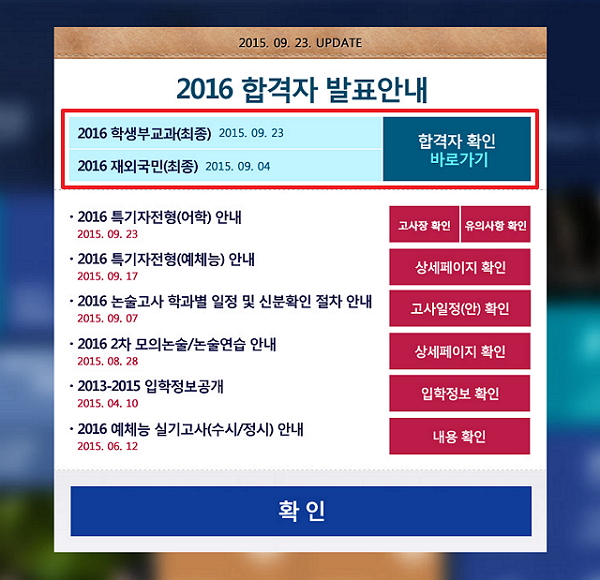 한양대학교 2016학년도 수시 합격자발표