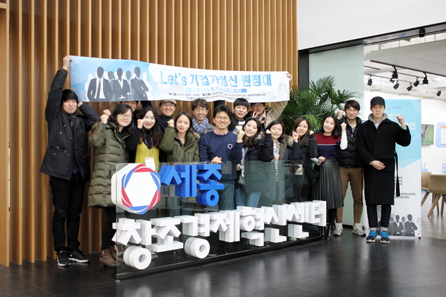 | ▲ 프로그램에 참여한 주요 대학의 학생들이 세종창조경제혁신센터를 방문하고 기념촬영을 하고 있다. |