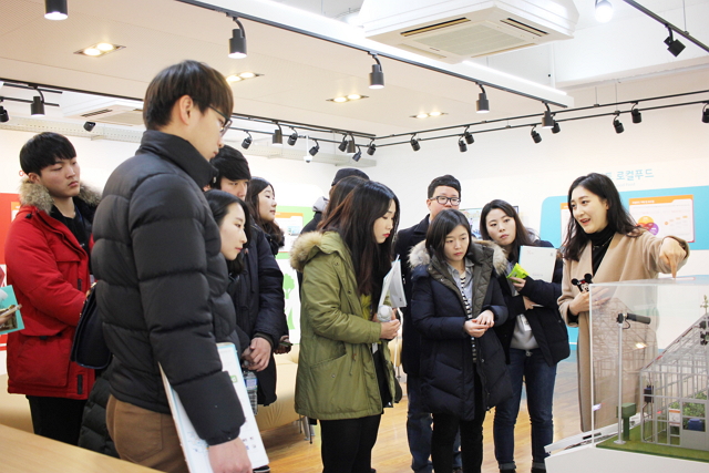 | ▲ 학생들이 세종창조경제혁신센터에 위치한 창조마을 전시관을 관람하고 있다. |