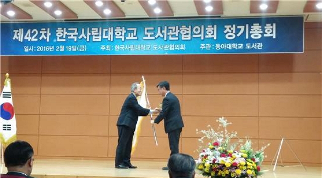 한양대 백남학술정보관이 최근 부산시 동아대학교에서 열린 ‘한국사립대학교 도서관협의회 2016년 정기총회’에서 한국사립대학교 도서관협의회 제43대 회장교로 선출됐다. 임기는 2016년 3월 1일부터 1년이다.