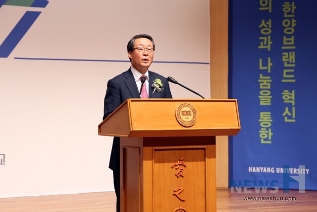 두루 아시다시피, 우리 한양대학교의 77년 역사를 지탱하고 이끌어온 건학 이념은 ‘사랑의 실천’입니다. ‘사랑’의 가치를 가르치며 배우고 ‘사랑’의 가치로 이끌어온 한양의 역사에는 다른 어느 대학도 갖추지 못한 품격과 깊이가 있습니다. 우리 한양은 이러한 품격과 깊이 위에 창의력과 실용적 전문 능력을 더하는 교육을 지향하면서, 세상을 발전시키는 힘을 지속적으로 키워왔습니다.