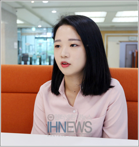 | ▲ ERICA캠퍼스의 창업 서포터즈 '라이온스타'의 송지현(커뮤니케이션디자인학과 2) 씨를 지난 달 30일 ERICA학술정보관에서 만나 인터뷰를 진행했 다. 송지현 씨가 라이온스타의 활동에 대해 설명하 고 있다. | ||