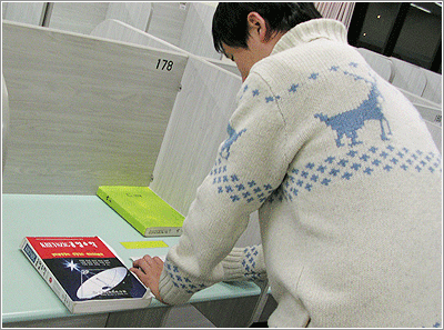 6시, 드디어 사석정리가 시작되고 김상익 군이 제 1열람실 문을 잠근다. 뒤늦게 들어오는 학생들은 가차 없이 정리되는 것이다. 각 자율위원이 양 구석을 기점으로 좌석을 체크하기 시작한다. 3백 여 좌석에 자리를 차지하고 있는 학생들은 50~60여명. 마치 중 고등학교 시절 독서실 총무가 자리를 체크하는 듯, 엄숙하기 그지없다. 178번 좌석, 책은 놓여져 있지만 주인은 온데간데없다. 열람실의 명당자리라 여겨지는 한 좌석을 사석으로 만들어버린 주인의 신원을 파악하기 위해, 책상에서 책 한권을 든다. 이윽고 ‘사석정리가 돼 책을 보관하겠으니 자율위원실로 와 찾아 가십시오’라는 통보 용지와 다른 학생이 앉아도 된다는 알림용 노란 메모가 놓인다. 책을 들고 다시 다른 사석이 있는지 체크하기 시작한다. 여기저기 통보용지가 놓여지고, 20여분 뒤 자율위원들이 책 20권을 들고 열람실 문 앞에 섰다. 1열람실 문이 유쾌하게 찰카닥 풀리며, 비로소 제 1열람실의 진정한 아침이 시작됐다.
