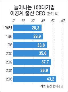 최초로 이공계 출신 CEO의 숫자가 상경계 출신 숫자 앞질러