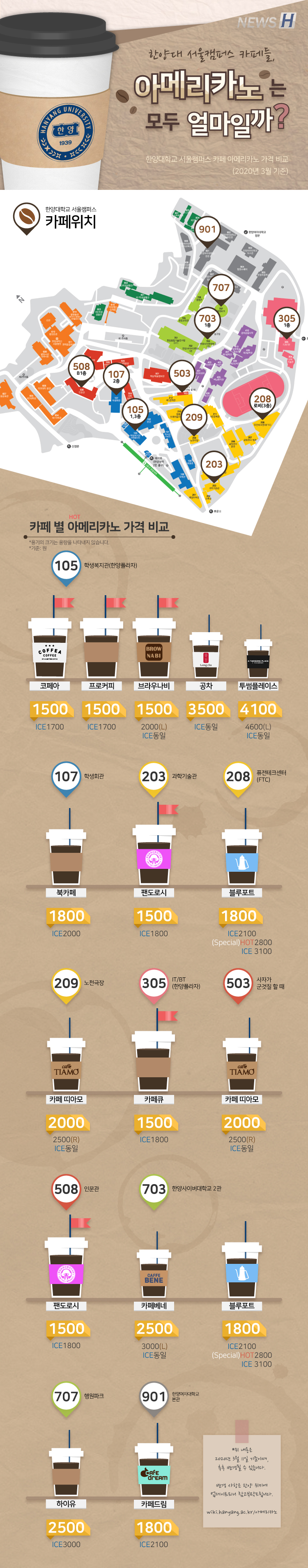 [인포그래픽] 한양대 서울캠퍼스 카페들, 아메리카노는 얼마일까?